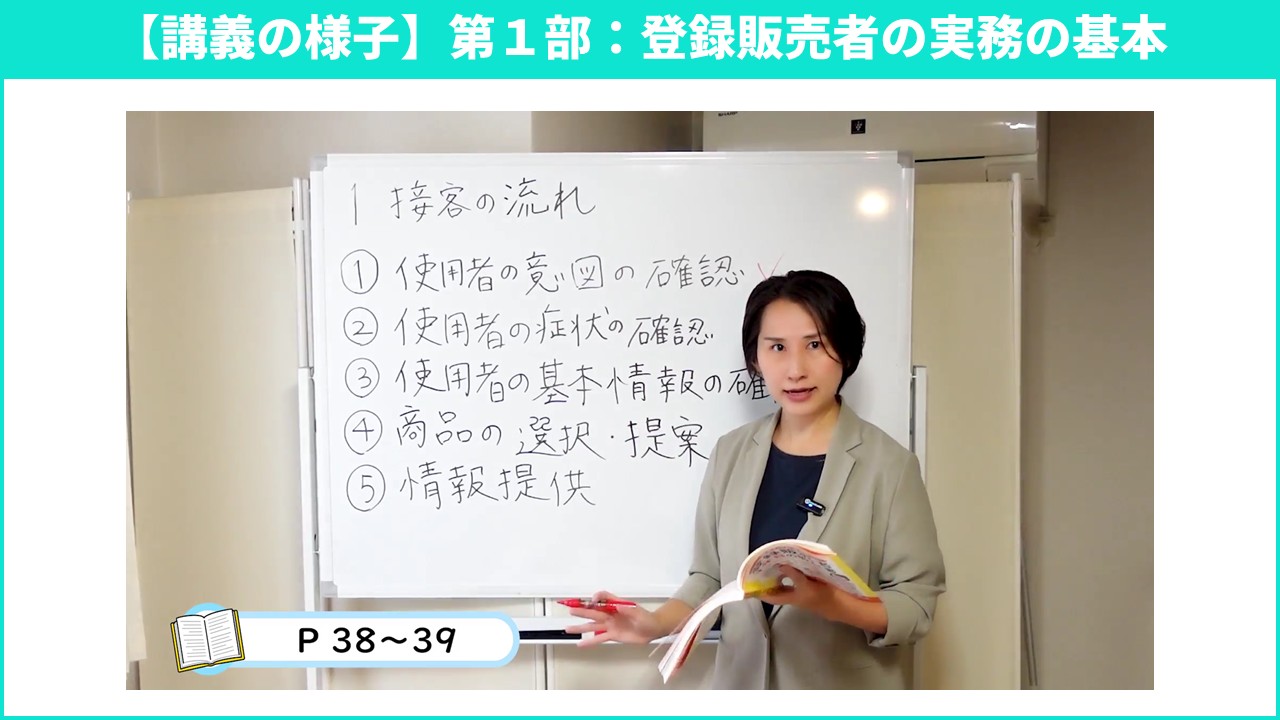 「現場で適切に動ける登録販売者」の育成を目的とした講座であり、9時間の動画コンテンツの中で、「接客の流れ」から「適切な薬の選び方」まで、著者本人が丁寧に解説しております。