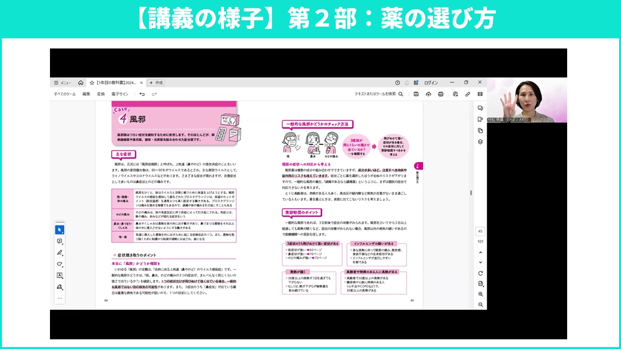 講座を行うのは、「やさしくわかる!登録販売者1年目の教科書」の著者の村松早織(薬剤師)です。