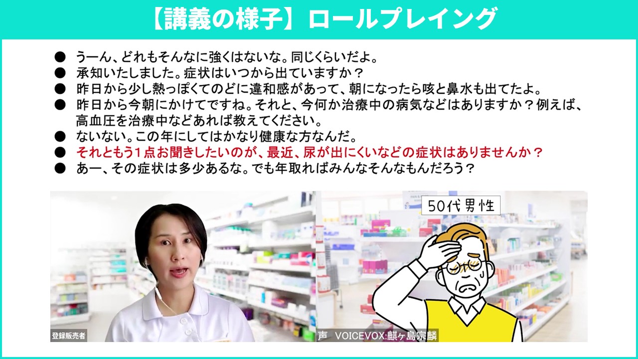 本講座では「適切に動ける登録販売者」になるためのメソッドを、やさしい表現でわかりやすく解説しているので、座学が苦手な方にも無理なく受けていただける内容となっております。